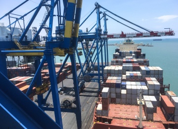 The terminal handles 125,000 containers per month, which is just under 70% of the country’s sea freight. The container terminal has a 247,000-square-metre container yard (tarred) with a shunting area and a 574-metre-long deep-water quay with a depth of 11.5 metres. The throughput in 2012 was three quarter of a million containers.