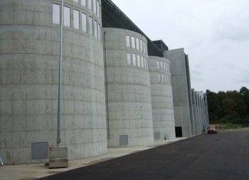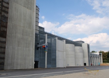 The wood is sourced from forest and landscape conservation work, as well as driftwood from hydroelectric power plants. The wood is stored in three silos, each about 13 metres high. A fourth silo is for drying wood chips. The wood carburettor itself is a steel tank about eleven metres tall and three in diameter. The two gas engines (cogeneration units) produce electricity – enough to power 10,000 medium-sized households. The heat is fed into the district heat network.